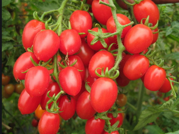 圣女果又稱小櫻桃,珍珠小番茄,櫻桃小番茄,既可蔬又可果,也可以做成蜜餞。果實直徑約1~3厘米,鮮紅碧透(另有中黃、橙黃、翡翠綠等顏色的新品種),味清甜,無核,口感好,營養價值高且風味獨特,食用與觀賞兩全其美,深受廣大消費者青睞。圣女果性甘、酸、微寒,歸肝、胃、肺經;具有生津止渴, 健胃消食,清熱解毒,涼血平肝,補血養血和增進食欲的功效;