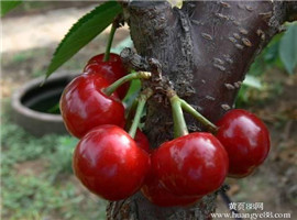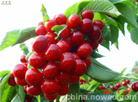 美早櫻桃苗由大連市農(nóng)科院從美國引入,該品種果實個大而整齊,平均單果重9克左右,最大果重11.4克。果形寬心臟形,大小整齊,頂端稍平,果柄特別短粗。果面紫紅色,光亮透明。肉質(zhì)脆而不軟,肥厚多汁,風(fēng)味酸甜可口,品質(zhì)優(yōu)良,可食率達(dá)92.3%,可溶性固形物含量17.8%