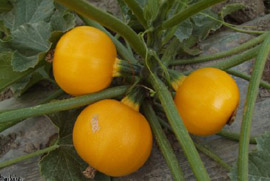 黃珍珠,極早熟西葫蘆,嫩瓜圓形,表皮金黃色,嫩瓜可生食,無蔓,單瓜重250g